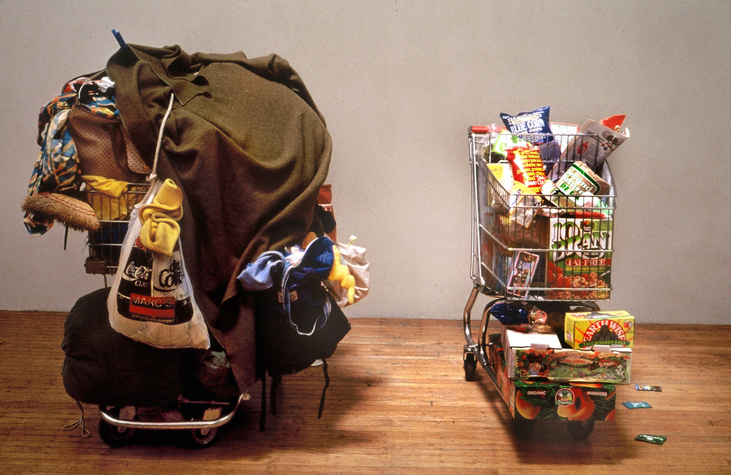 Lateral Move, 1992, 10 x 6 x 5 feet, homeless and New Age shopping carts